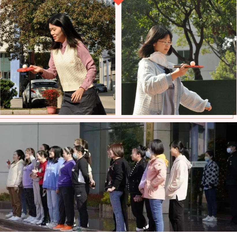 乒乓球拍运球环节,趣味横生。伴随着裁判员的一声哨响,女职工们托着球,小心翼翼又步伐矫健地朝终点冲去,围观的女职工在一旁为她们加油呐喊,游戏一开始就把活动的气氛推向高潮。