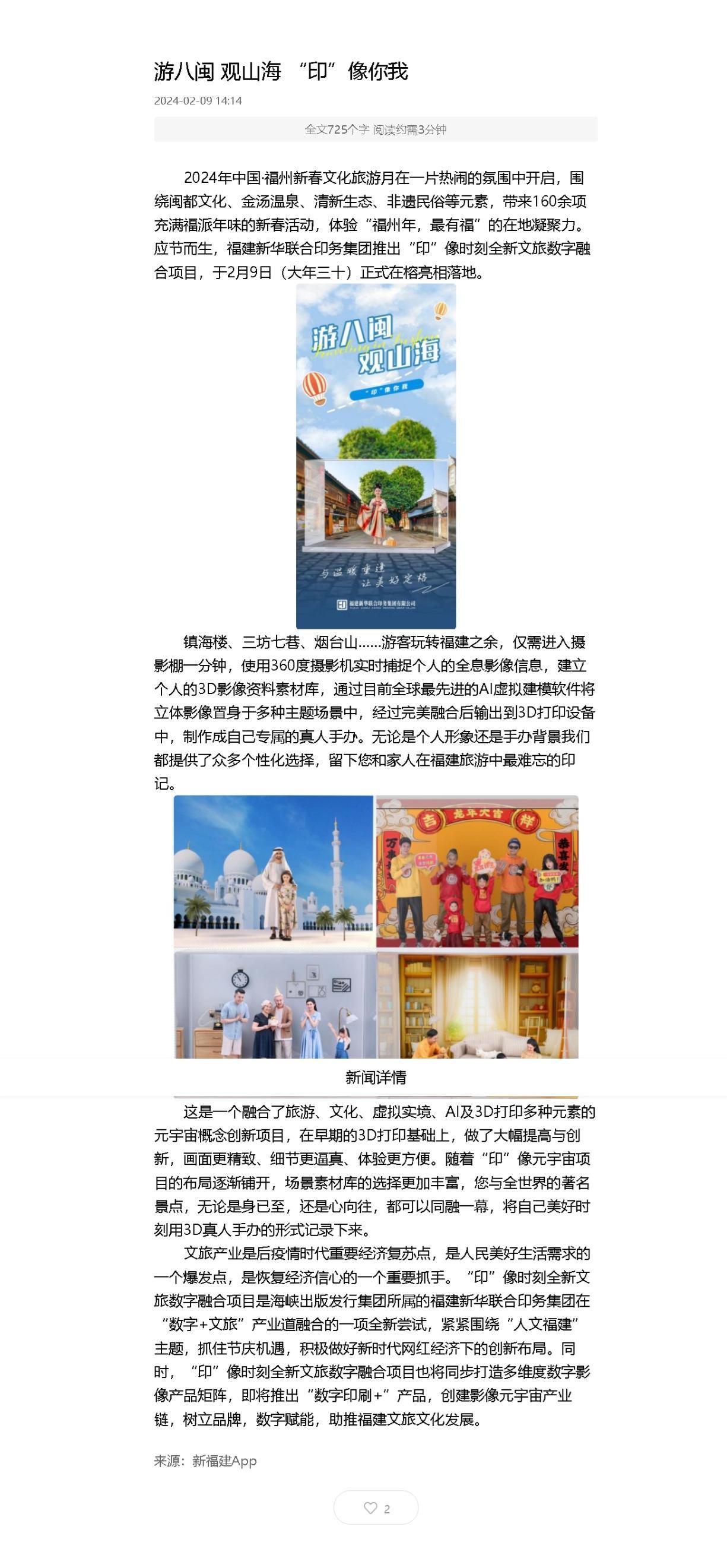文旅产业是后疫情时代重要经济复苏点,是人民美好生活需求的一个爆发点,是恢复经济信心的一个重要抓手。“印”像时刻全新文旅数字融合项目是BEATS365官网所属的BEATS365官网在“数字+文旅”产业道融合的一项全新尝试,紧紧围绕“人文福建”主题,抓住节庆机遇,积极做好新时代网红经济下的创新布局。同时,“印”像时刻全新文旅数字融合项目也将同步打造多维度数字影像产品矩阵,即将推出“数字印刷+”产品,创建影像元宇宙产业链,树立品牌,数字赋能,助推福建文旅文化发展。